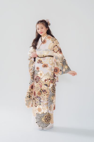 白地に大きなお花柄の可愛い振袖です
